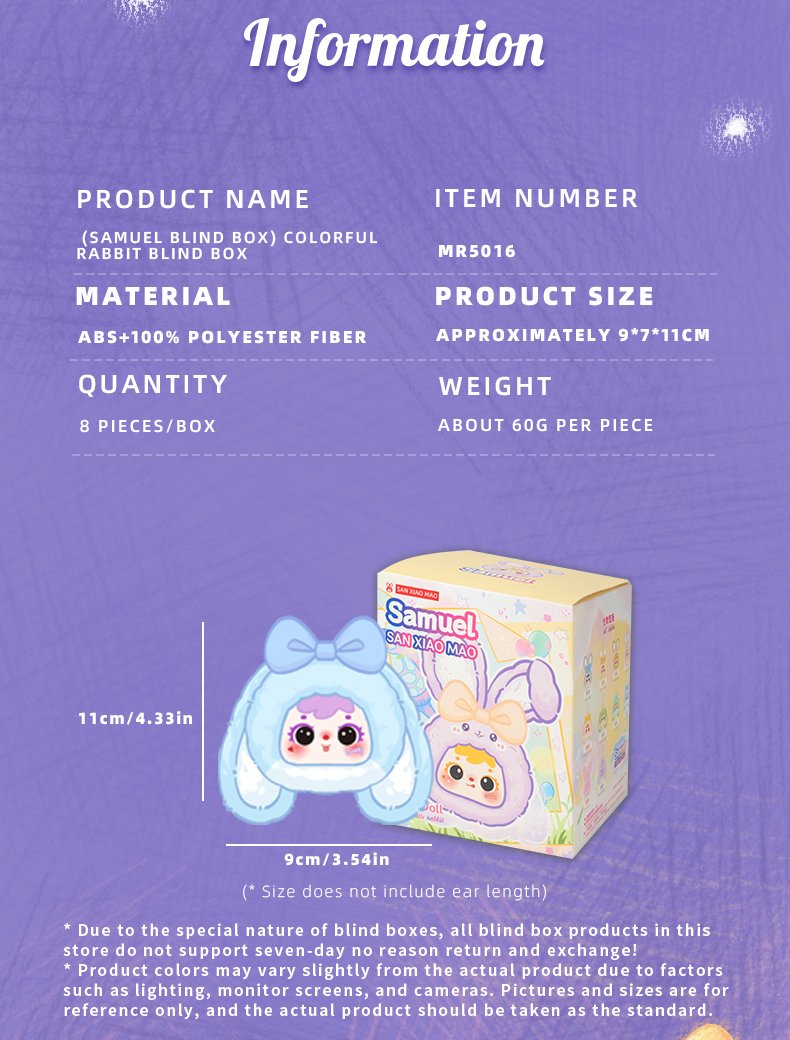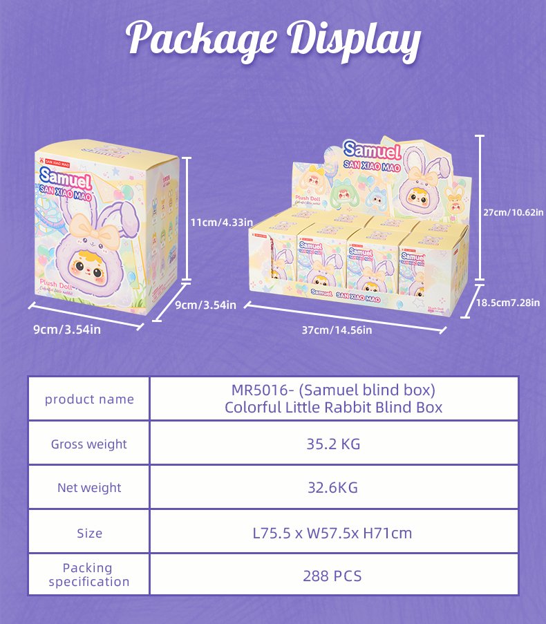 Item Number:MR5016 Type:Plush blind box Package:288 per carton
