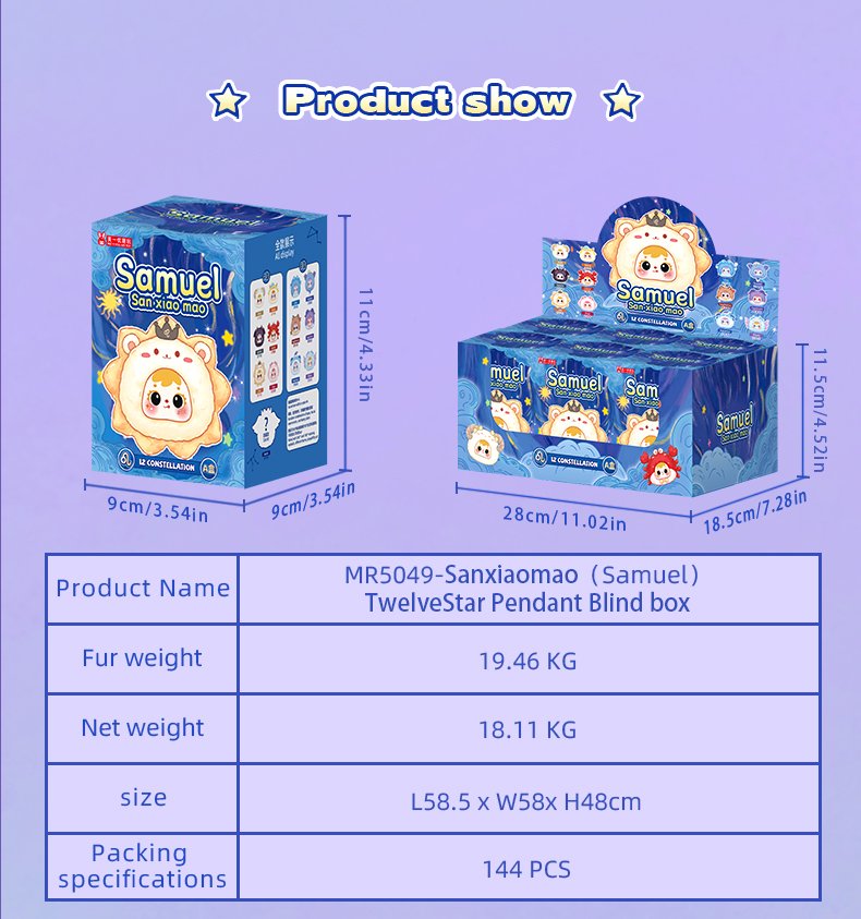 Item Number:MR5049 Type:Plush blind box Package:144 per carton